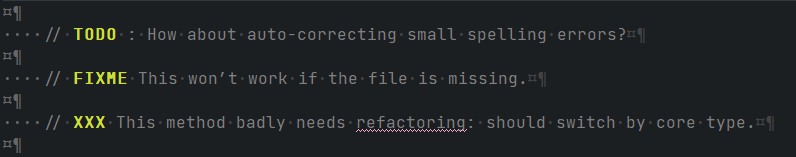 코드에서 문제가 일어날만한 부분을 강조 표기할 때. 완벽하게 정확히 구현되지 않은 부분이 있을 때.