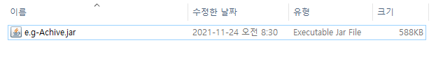 ※ ZIP 파일을 해제하는 표준 소프트웨어의 경우 JAR를 지원하지 않는 경우가 많기 때문에 JAR파일을 만들기에는 적합하지 않다.