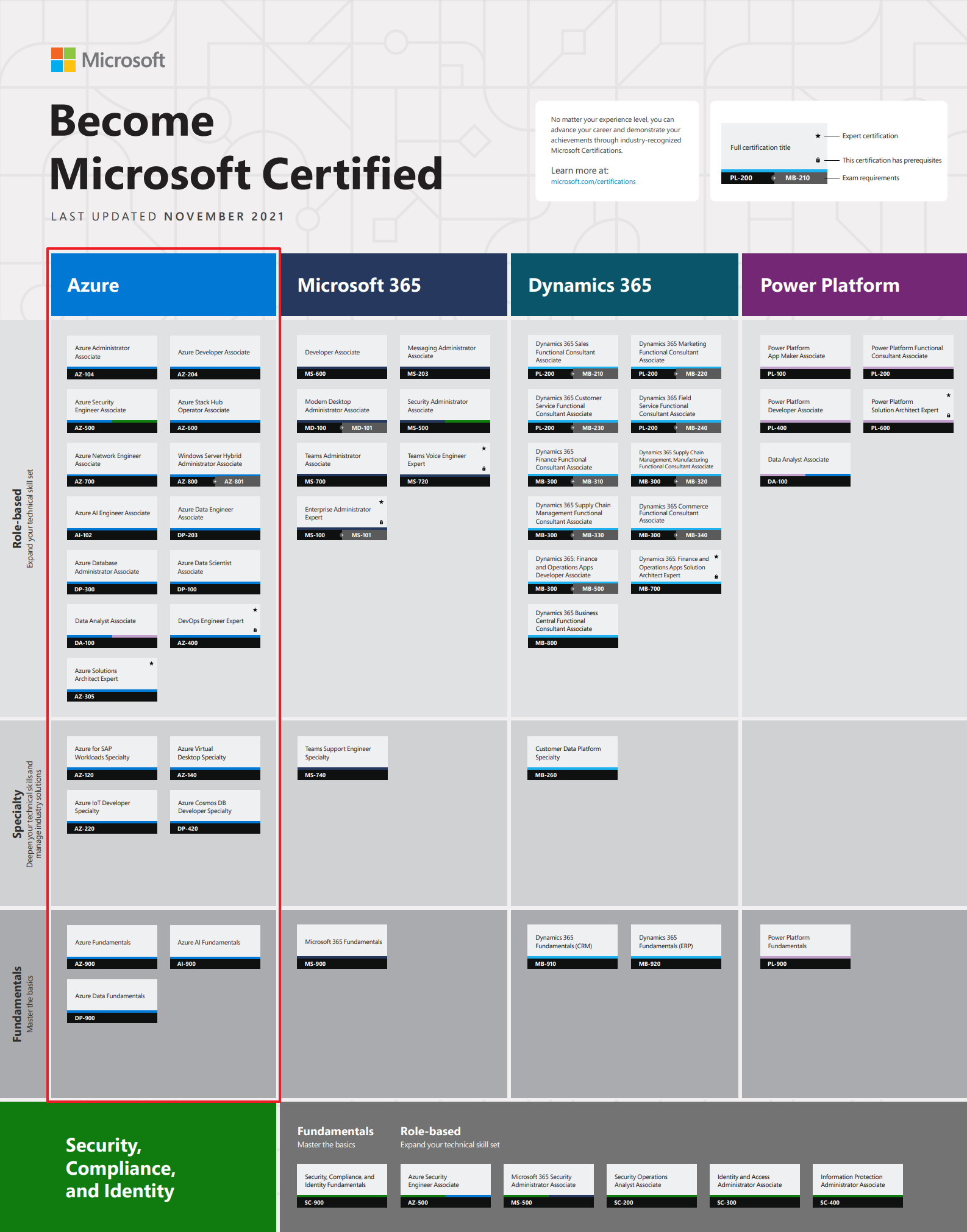 | Microsoft Security, Compliance, and Identity Fundamentals Azure | SC-900 |