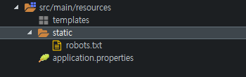 따로 txt 파일을 만들지 않고도 RequestMapping에 robots.txt를 맵핑해주고 이후 response 객체를 통해 텍스트를 적어주면 적용할 수 있다.