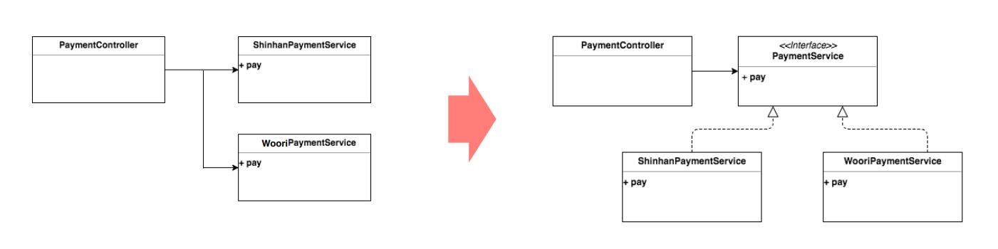 그렇기에 둘 다 추상화된 인터페이스에 의존하도록 한다.