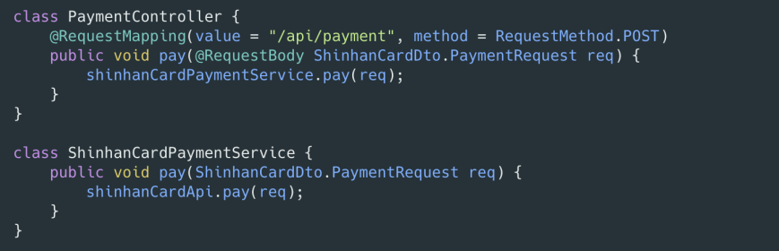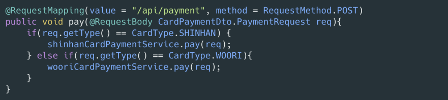 확장에 유연하지 않음. (새로운 카드사 추가)
