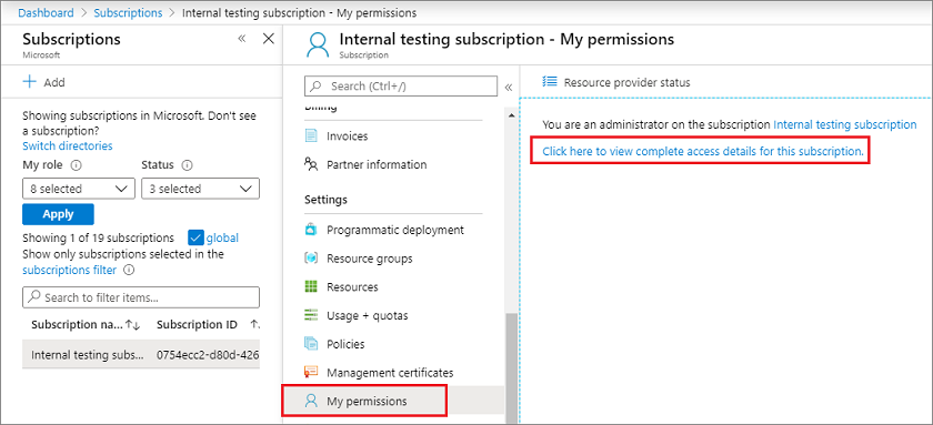 3. My permissions를 선택합니다. 그런 다음 여기를 클릭하여 이 헤드라인 등록에 대한 전체 액세스 세부 정보를 보십시오.