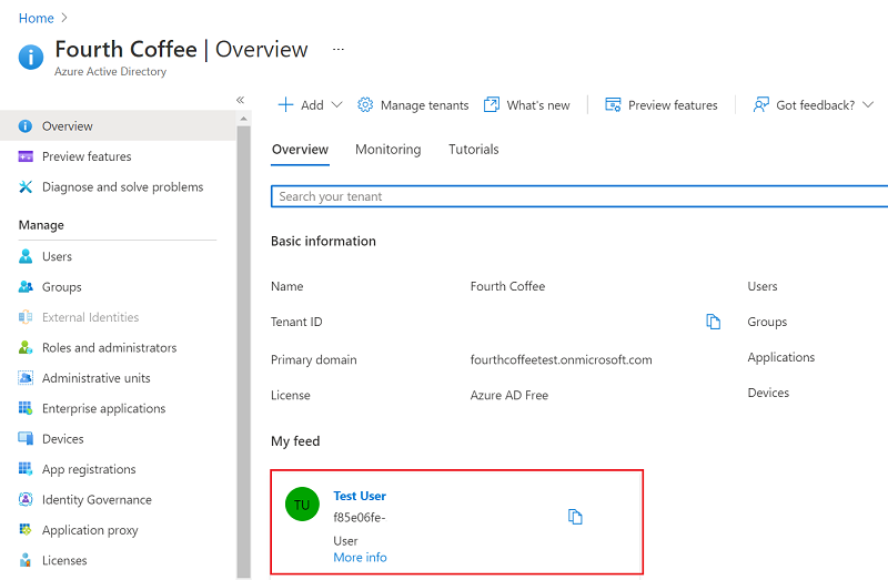 2. Overview -> My feed에서 역할을 찾습니다. 사용자 역할이 있는 경우 관리자가 아닌 사용자가 응용 프로그램을 등록할 수 있는지 확인해야 합니다.