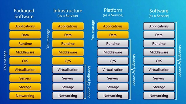 1. Packaged software (On-premise 방식) : 직접 인프라와 플랫폼, 애플리케이션을 관리